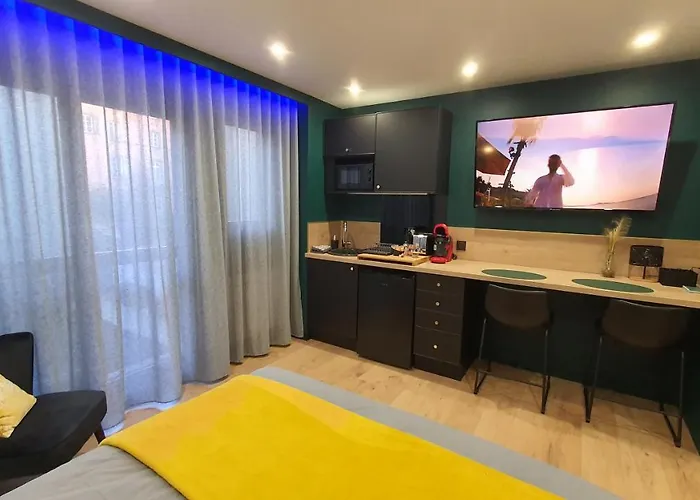Situado no distrito de Centro de Clermont Ferrand em Clermont-Ferrand, o apartamento Studio L'Elegance Place De Jaude Et Garage fica a 10 km do aeroporto de em Clermont-Ferrand. A acomodação também inclui kitchenette com chaleira elétrica, máquinas de café/chá e geladeira.
